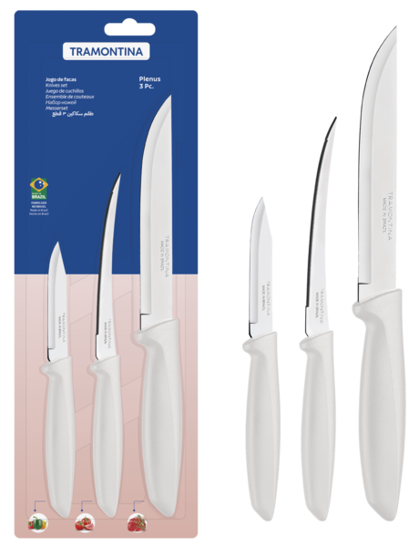 Набір ножів Tramontina Plenus light grey, 3 предмети